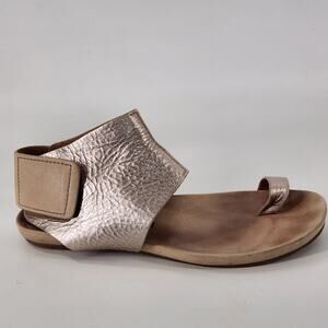 Pedro Garcia Metallic Ankle Cuff Sandals Flat Toe Loop Gladiator EU38 Rose Gold