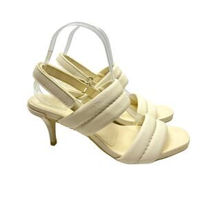 Pedro Garcia NWB Claudine Creme Pebble Nappa Leather Strappy Midi Heel Sandals