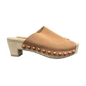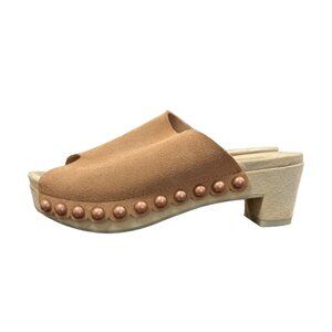 Pedro Garcia Nain Suede Studded Peep Toe Sandalette Mule Clog Tan EU 36 US 5.5
