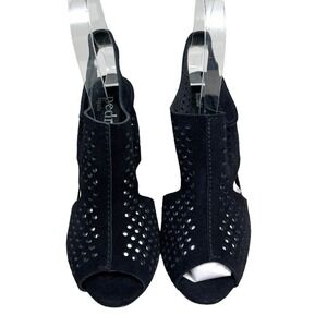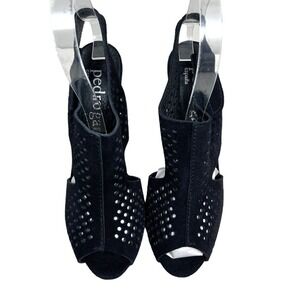Pedro Garcia Pump Stiletto Black Suede Perforated Slingback Peep Toe Women 40.5