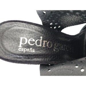 Pedro Garcia Samara Slingback Peep Toe High Heel Black Suede Sandal US 8