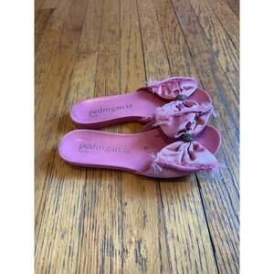 Pedro Garcia Sandals Womens Size EU 39.5 Pink Satin Bow Slide Crystal Jeweled