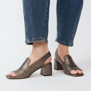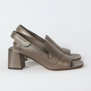 If a loafer and a sling-back had a baby, this would be it. Oh so chic, this stylish and comfortable shoe from Pedro Garcia features a square peep toe front with loafer inspired vamp and user friendly block heel. Back strap fastens with Velcro. Vegetable tanned goatskin. Nubby bottom for added traction. Heel Height: 55mm (appr. 2in). Made in Spain.
