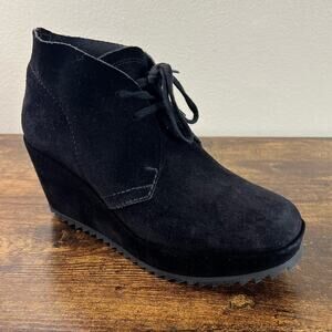 Pedro Garcia Wedge Booties 7 Black Suede Leather Lace Up Designer 37 Italy Boots