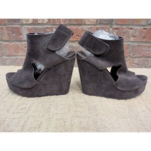 Pedro Garcia Wedge Sandals Women Size 38.5 EU 8.5 US Grey Suede Leather