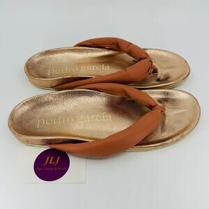 Pedro Garcia Women's Anita Rosette Stucco Leather Thong Sandals Size 38.5/ 8.5 US