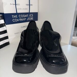 Pedro Garcia Zavanna Block Heel Loafer- BLACK PATENT PLATFORM