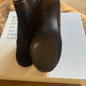 THese suede ankle boots have been worn once. They are in pristine condition. Comes with the original box, duster bag and heel replacement caps.