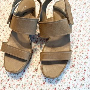 Pedro Garcia Tan Wedge Sandals with Velcro Straps