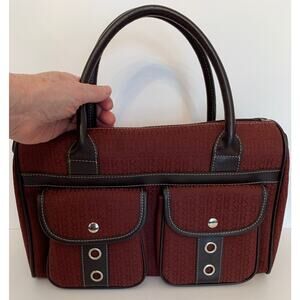 Pedro Rogado Satchel Burgundy Logo Print with Brown Leather Trim Made in Spain