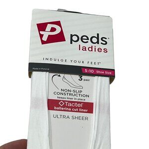 Peds Ladies Ballerina Cut Liner Socks Size 5-10 White 3-Pair Ultra Sheer Non-Sli