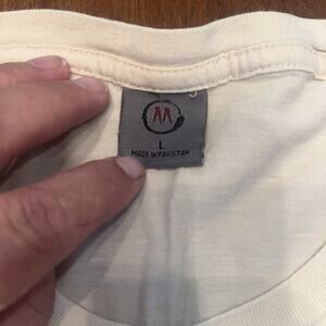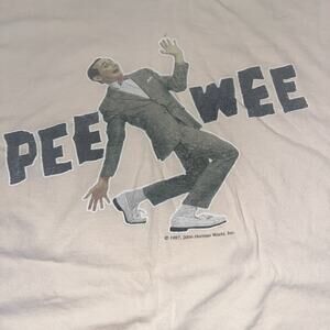 The product is a men's large T-shirt featuring a design inspired by the popular comedian Pee Wee Herman. The shirt is multicolored with short sleeves and is made by the brand AA. It is suitable for regular size men who are fans of Pee Wee Herman's humor and style. Perfect for those looking to add a fun and distinctive piece to their wardrobe.