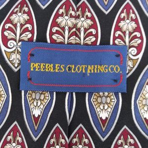 Peebles Clothing Co Mens Necktie 100% Black Red Blue Geometric Tie - 57" x 4"