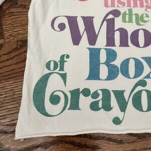 Peek white long sleeve t-shirt with words graphics on front and back. Size XS or 2/3. Fabric is super soft 100% Pima cotton. Lightweight with raw rolled hem. Graphic says: Life is about using the whole box of crayons and back says Color my world in rainbow letters. My girl loved this one so listing as GUC just due to the number of times worn but no flaws found.