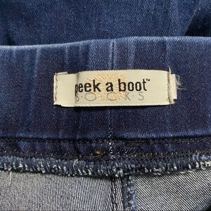 Peek A Boot Socks Womens Large Medium Wash Pull On Stretch Jeans in excellent used condition. The material tag has been removed but feels to be a cotton blend. There is a lot of stretch throughout. No stains, tears or rips.