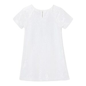 This sparkle like the snow in this sequined dress from Peek. Features Save the Arctic, crew neck, keyhole with button, short sleeves, sheath style, and comfy.