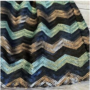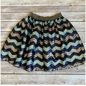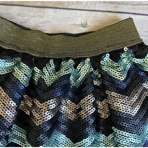 Size 6/7 Peek Multi Sequins Skirt. Gorgeous sequin chevron skirt. Comfortable wide elastic waistband. Fully lined. The perfect sparkly shiny skirt to twirl in! Perfect for holiday photos and parties, Christmas or NYE or anytime she wants to get a little fancy! No flaws, very good used condition.