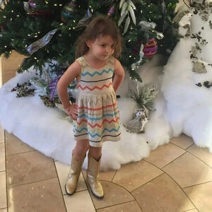 Peek Denver Embroidered Zig Zag Chevron Metallic Cotton Dress Sz: XS/2-3