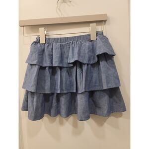 Peek Tiered Ruffle Chambray Denim Skirt Layered Pull On Elastic