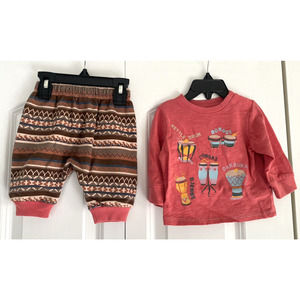 Peek Kids Baby Boy Size 3-6 Months Holiday Music 2 Piece Set Brown Red Drums