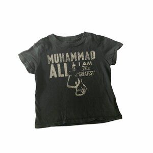 Peek Little Peanut Muhammad Ali I Am the Greatest boxing graphic tee in prefaded black with a distressed graphic. Size 18-24 months, I do think it runs TTS (some other Peek tees run big). GUC some wash wear/minor fade, no holes or stains.
