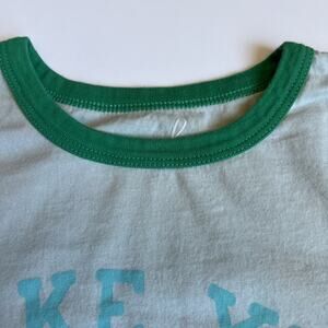 Size 10, Peek, Make Your Own Luck graphic tee. Green on green ringer tee. Large smiley face on front with shamrock eyes. 100% cotton. Perfect for St. Patrick's Day or any day! Play condition for stain across the front. See close up photo. Otherwise good shape!