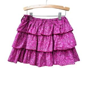 Peek Skirt Girls Size 10 Pink Floral Cotton Tiered Ruffle Pull On Lined Tween