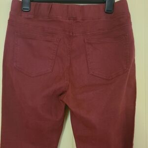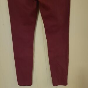 Has some ribed lines going across the from of pants legs. Leangth of pants is 39 in.