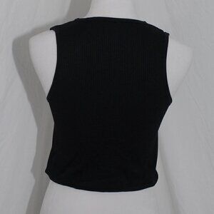 Peekaboo Chest 16” Crop Top Ribbed EUC Womens Black Tank Top