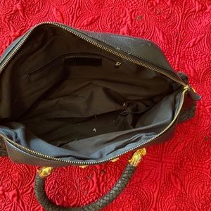 Everything is working on this beautiful unbranded quilted pleather purse. The purse is at least 10 years old and is peeling, but can be gently restored. No strap. Measures 18” at bottom and zipper closure measures 18” 9” wide at smallest length c 8 inches high x3 inches wide. 7 inch handle drop