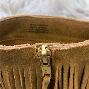 Jasper 2 is an ankle boot with an edge, featuring a peep toe, fringe around the ankle, and outside zipper. Worn less than a handful of times. Same day shipping