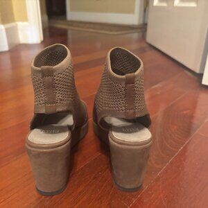 Suede-covered heel; leather outsole with rubber microinjected for comfort, flexibility, and traction.