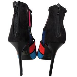 Peep Toe Colorblock Mod Cage Sandal 7.5 Stiletto Heel Statement Maximalism Artsy