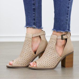 Peep Toe Taupe Faux Leather Heeled Ankle Boots