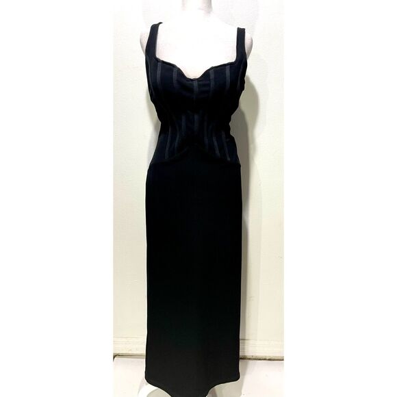 Peep maxi bodycon dress black romantic sexi casual sweetheart neck summer women M