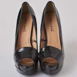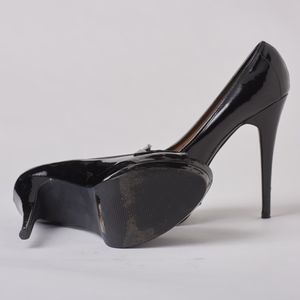 The right shoe has a few scuff on the heel and a little scrape as well.
