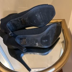 Mia Sadie Peep-Toe Bootie. Comfortable stretch fabric upper with padded footbed. 3.75 inch heel. Excellent condition, worn only once.