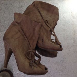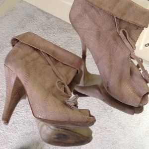 Python peep toe ankle booties. Used have a small stain on inner left boot