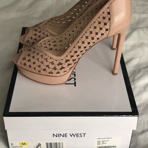 Peep toe platform stiletto shoes heart cut out pattern nude beige neutral basics