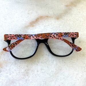 Peepers Jungle Fusion Black Leopard No Correction Blue Light Eyeglasses in excellent used condition. From zebra to cheetah, Jungle Fusion has you covered. The animal prints feature gold metallic hints for an extra touch of luxe, as do the premium gold hinges and matte gold front hardware. The soft-squared shape makes this style easy to wear. Focus ™ Blue Light Lenses Filters 40%+ of High-Energy Visible (HEV) Blue Light 7 Layer Anti-Reflective Coating, UV400 Protection, Distortion-Free Lenses