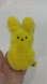 0558A-Peeps Beanbag Plush Toy Yellow Bunny Rabbit 6” x 3”. 2006 Brown embroidered eyes & nose. White piping outline; Just Born, Inc. Commonwealth Toy & Novelty Co. All new materials. Polyester fibers, polypropylene plastic pellets & polyurethane foam. Made in China; ages 3+. ***has some dark spots. See photos. Lovingly preowned. Soft plush.