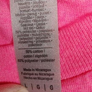 peeps mens neon pink t shirt size large. There is a tiny snag on the back right side towards the bottom. There is slight discoloration on the collar