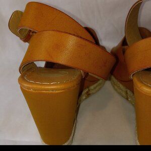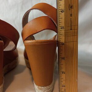 Chic and comfy summer-ready wedges! These tan faux leather espadrille sandals feature a trendy peep toe, woven rope platform, and a secure ankle strap with buckle closure.