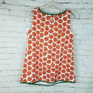 Classic Retro Style Sleeveless shell top, contrast trim, keyhole back, gathered neckline, fun kitchy orange print