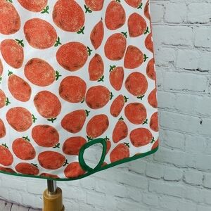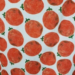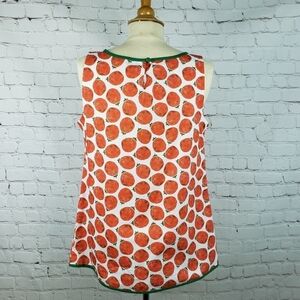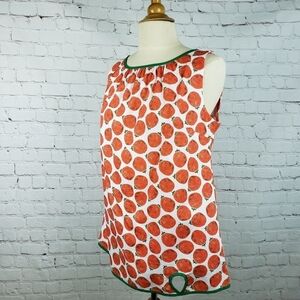 Classic Retro Style Sleeveless shell top, contrast trim, keyhole back, gathered neckline, fun kitchy orange print