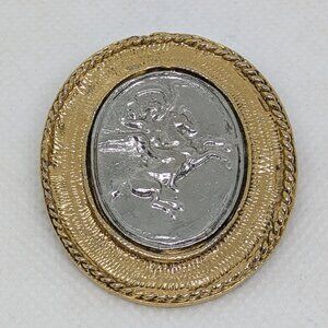 PegasVintage Gold and Silver Tone Oval Brooch Mythical Horse Pin Jewelry