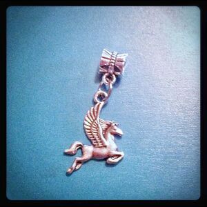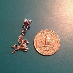 Cute charm. These fit the pandora bracelets. Hole is about 5mm. I used a coin so u could get a good idea of the size. These dangle charms are so cute. The charm color is silver.