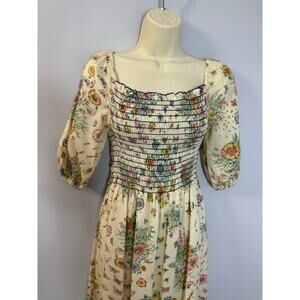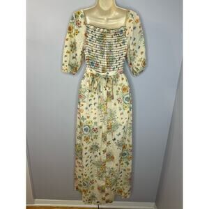 Sweet summery floral Maxi vintage 1970's 1980's Prairie smocked floral cream tie back.