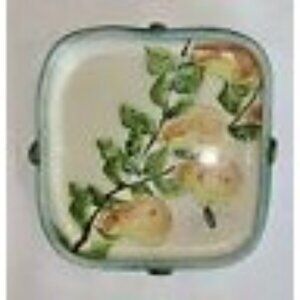 Peggy Crago Pear Serving Dish Square 8.5" Hand-Painted Pottery With Watercolor B