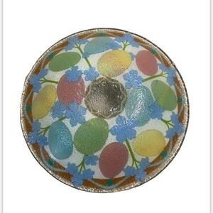 Peggy Karr Easter Egg Fused Art Glass Bowl Colorful Eater Eggs Blue Pink Green